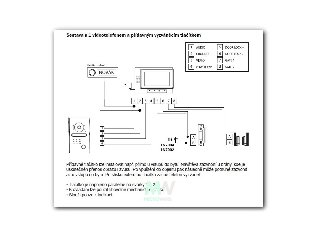 počet vodičů (monitor/zámek/brána) | 4+2+2 |