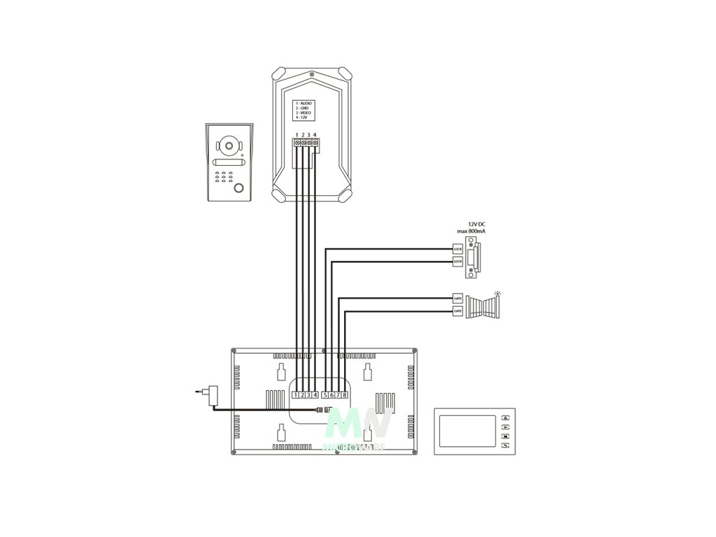Snadnou montáž na stěnu vám ještě více zjednoduší montážní rámeček, který je přibalen spolu s videotelefonem. K této sadě videotelefonu RL-10M (H1014) je možné přikoupit další samostatné monitory RL-10 (H1114) a propojit je s ní.