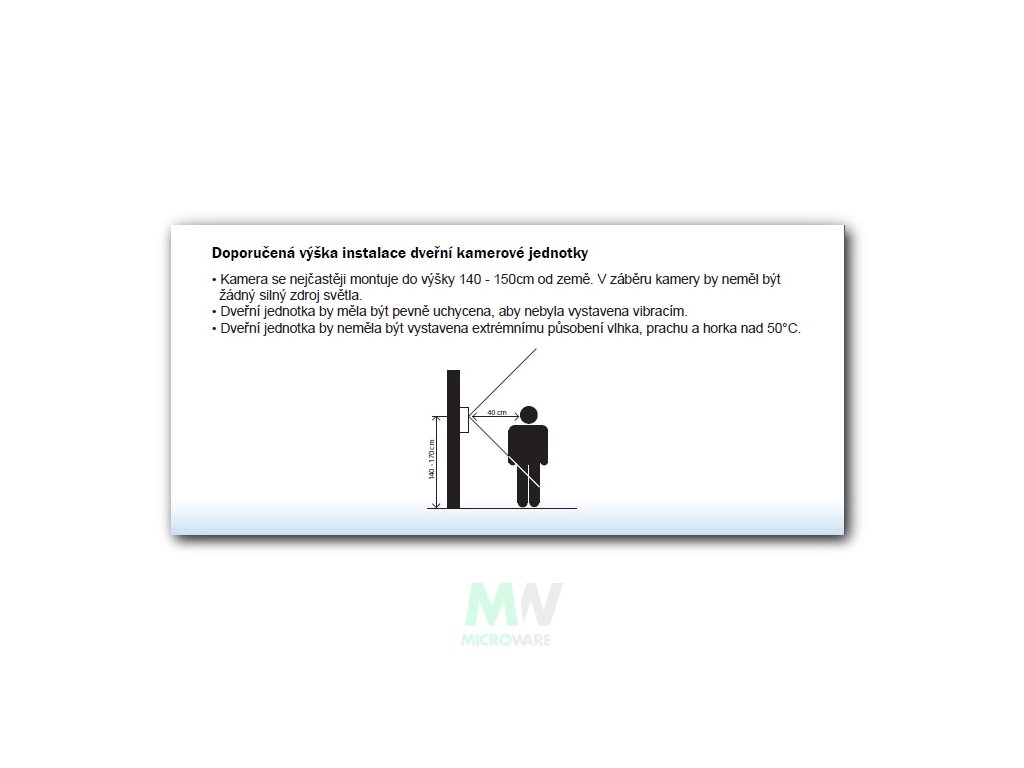 Kamerová jednotka v provedení antivandal, s mikroobjektivem “pinhole”, je vybavená infračerveným LED světlem. Díky tomu svou návštěvu identifikujete i ve tmě, a to do vzdálenosti 150 cm. Tato sada je kompatibilní s CCTV kamerami.