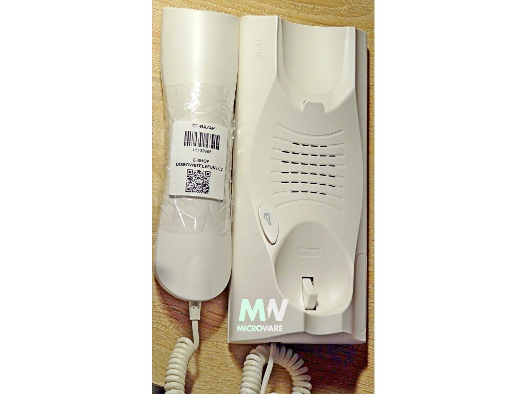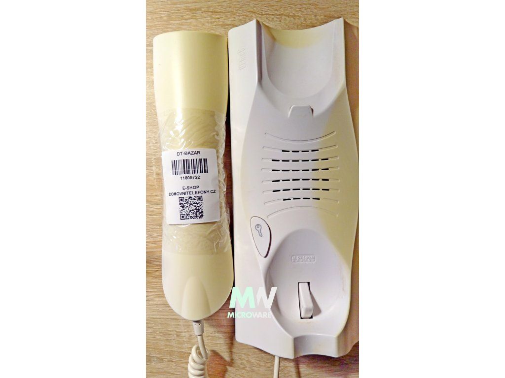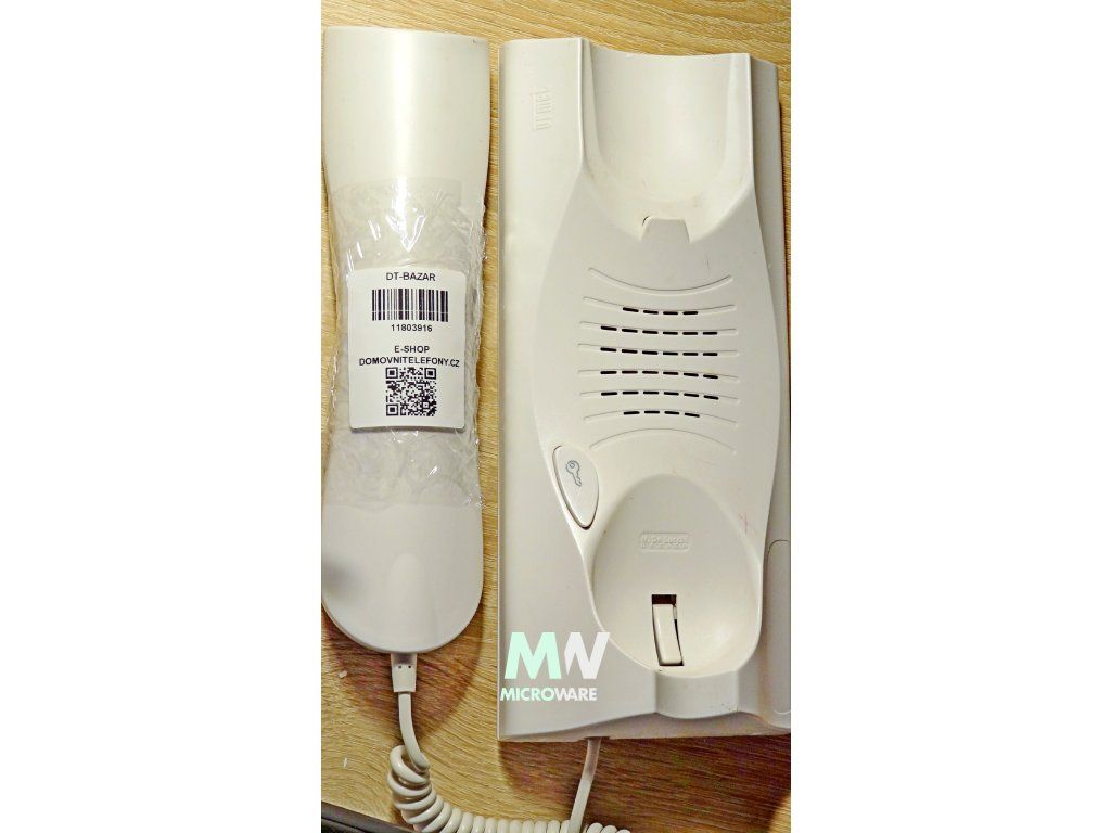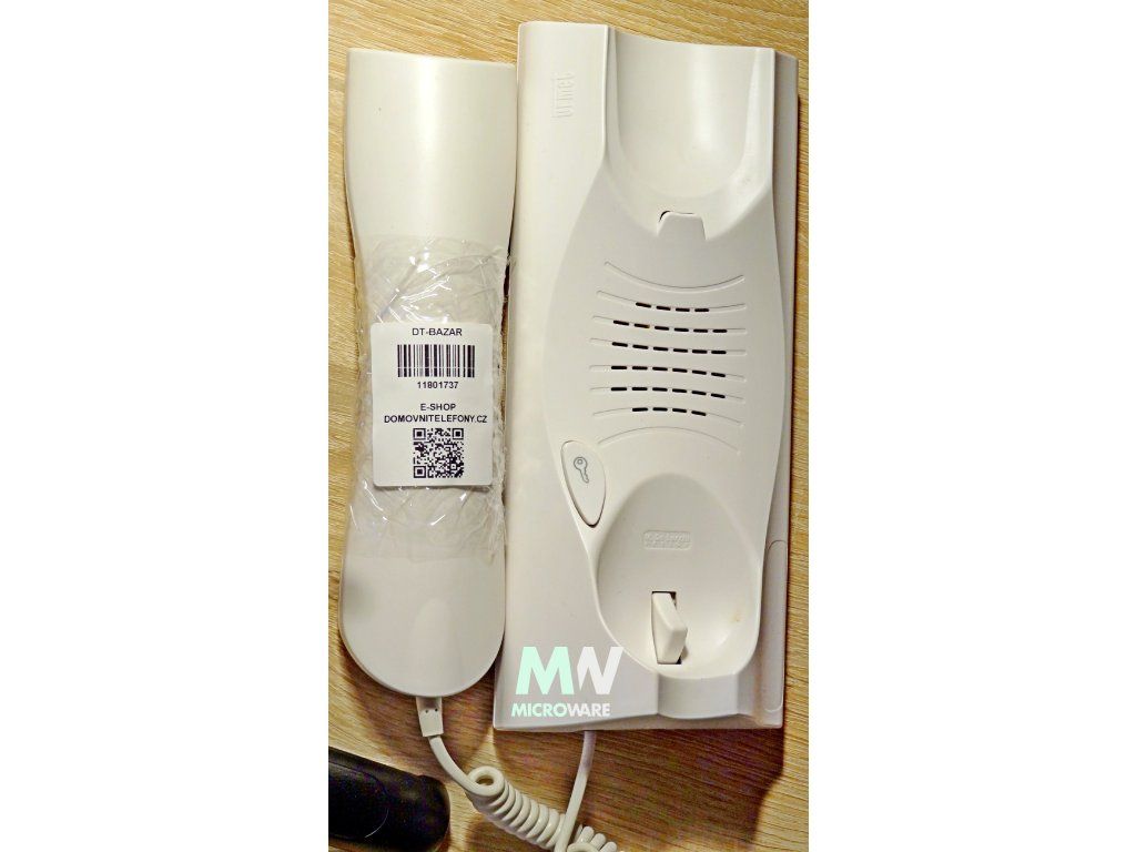• mikrotelefon je připojen bílým krouceným kabelem s gumovou průchodkou na straně mikrotelefonu