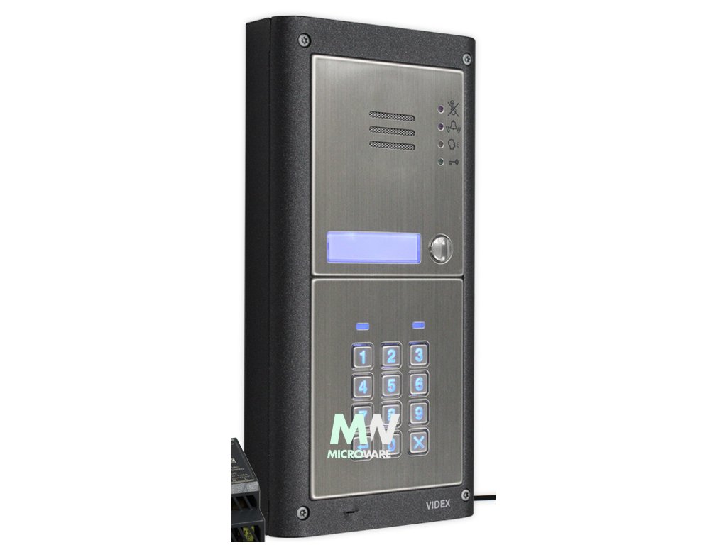 - Dveřní panel v provedení série 4000 je plně autonomní – vyžaduje pouze externí napájení a anténu a je rozměrově kompatibilní s ostatními komponenty domovního dorozumívacího systému Videx série 4000.